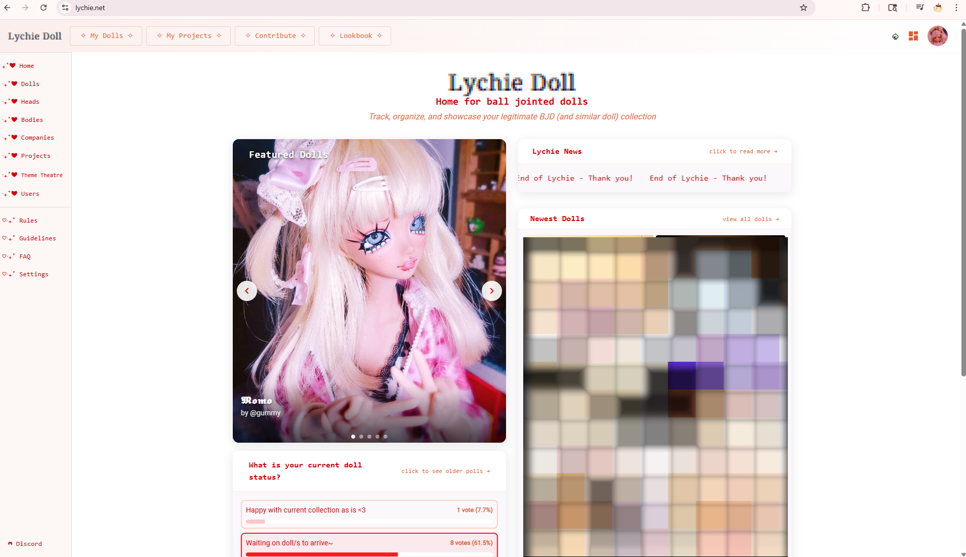 Lychie was an experimental site I developed to create a community for doll collectors!